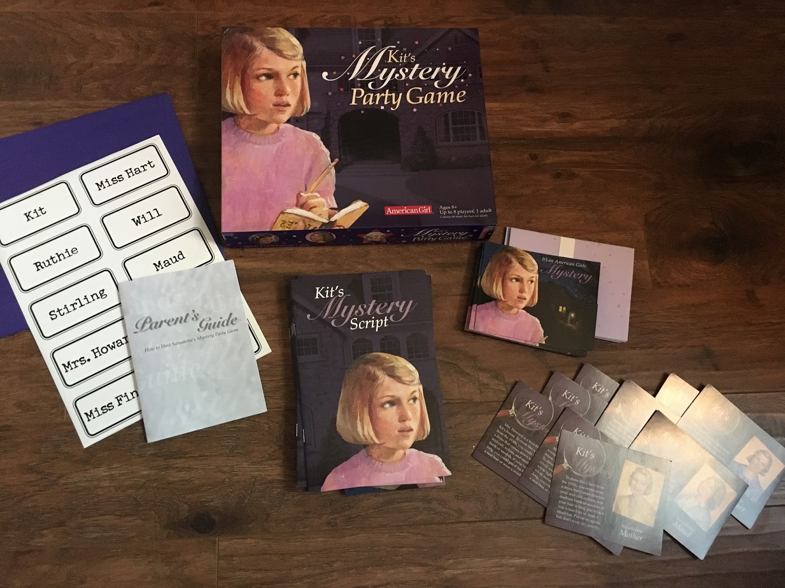 I am very pleased with the contents in the game. All include 8 invitations, 8 scripts (one for each girl), the clues, name tags, and a parents guide.